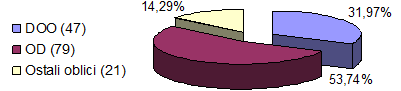 Dominantan oblik organizovanja su ortačka društva koja učestvuju sa 53,74 %, a zatim sledi DOO sa 31,97 % (47 preduzeća). |