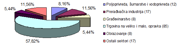 Najveći broj malih i srednjih preduzeća nalazi se u sektoru trgovine (85) i u prerađivačkoj industriji (16), što čini 74,8% od ukupnog broja malih i srednjih preduzeća u privatnom vlasništvu.